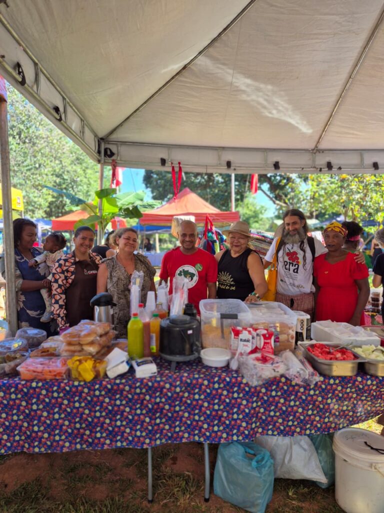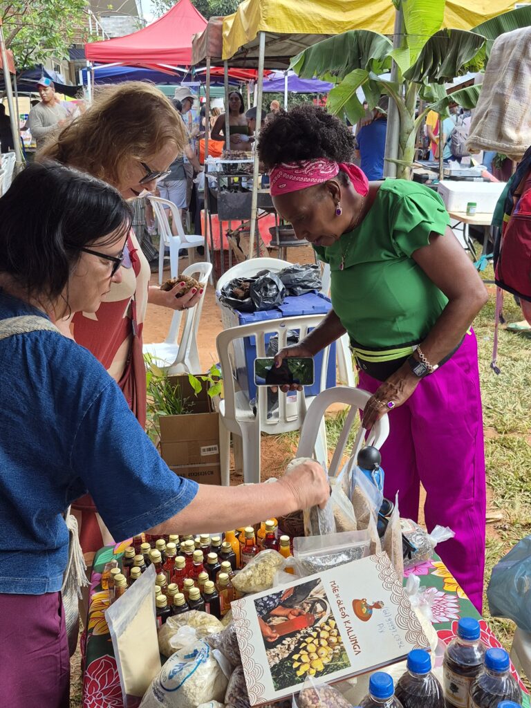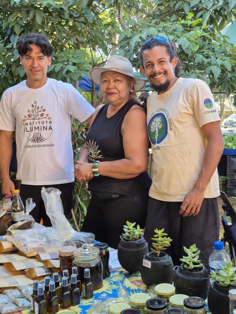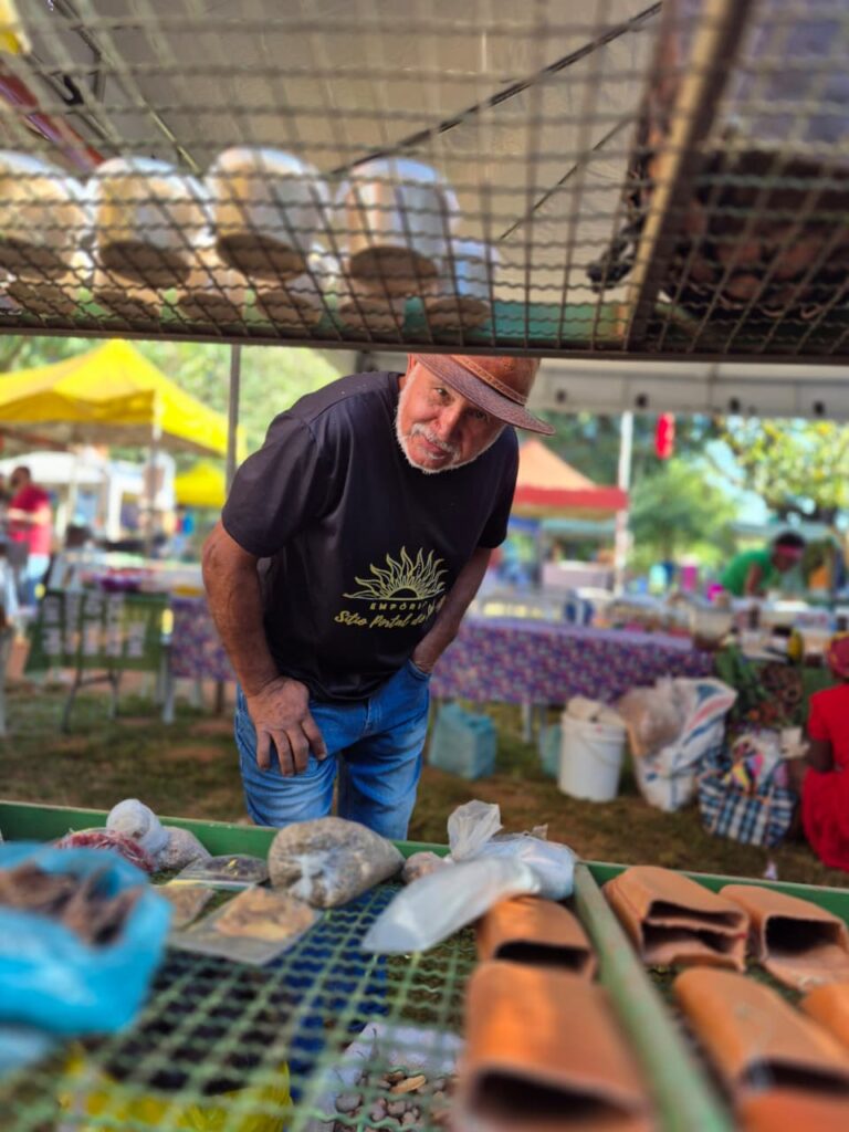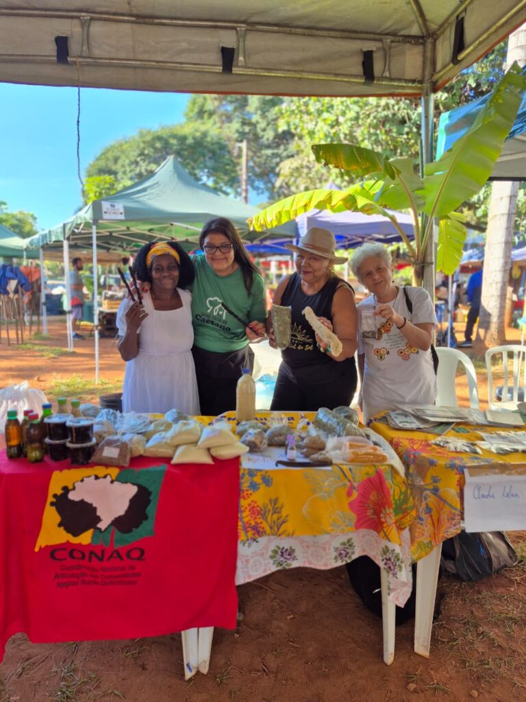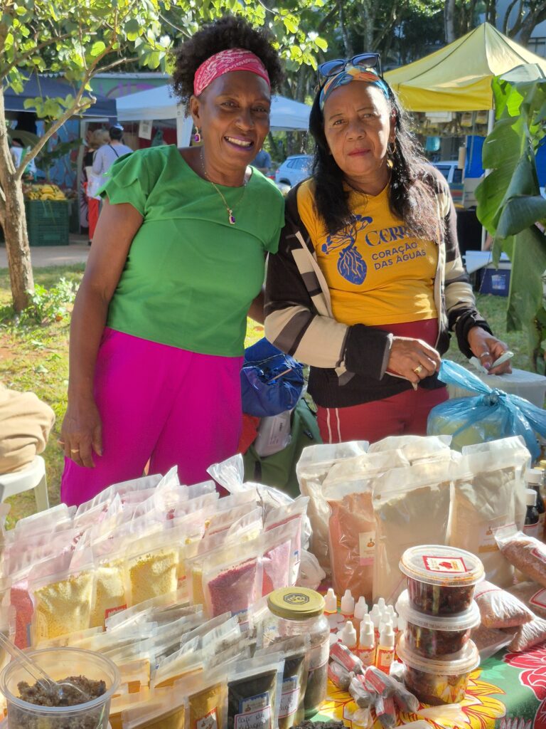 Um dos grandes destaques foi a presença das mulheres Kalunga, que trouxeram para o centro da cidade a força e a riqueza de seus territórios. Fiota, Teodora, Percília, Dirani, Vera e Laura compartilharam produtos e conhecimentos diretamente da Terra Kalunga, reafirmando o papel fundamental das comunidades tradicionais na preservação dos biomas brasileiros e na manutenção de práticas ancestrais de cuidado com a terra.