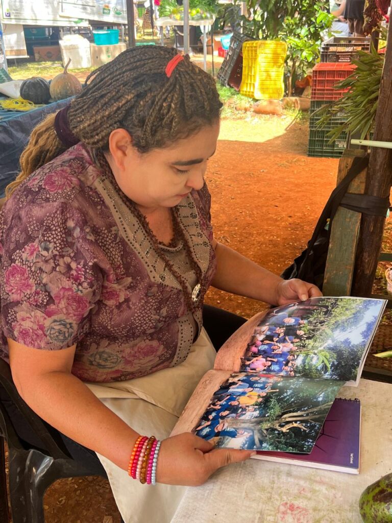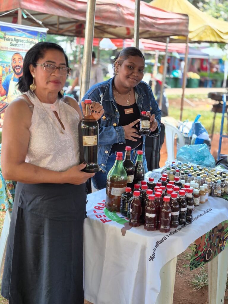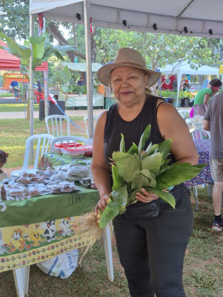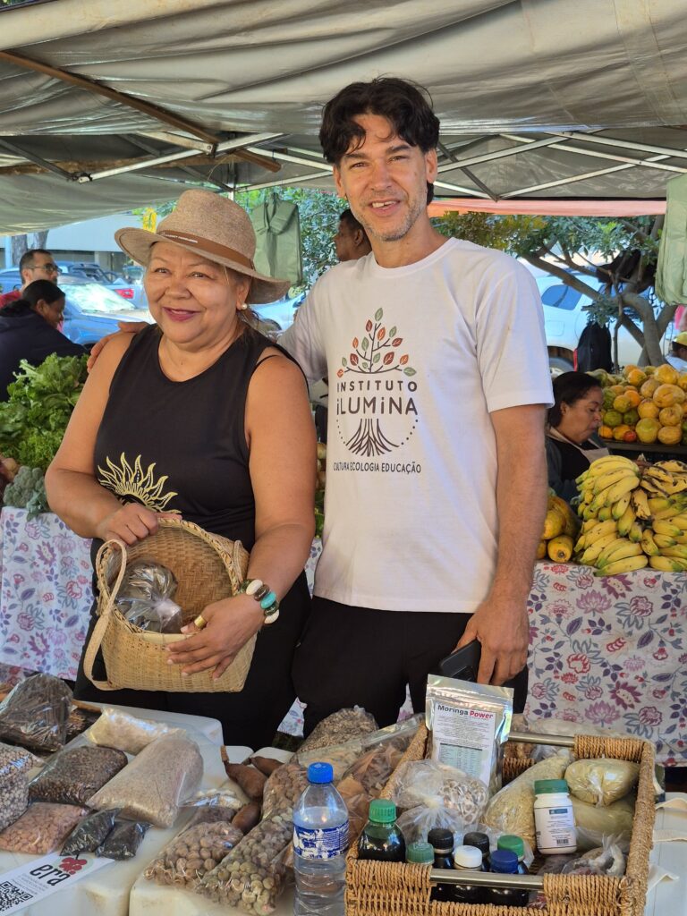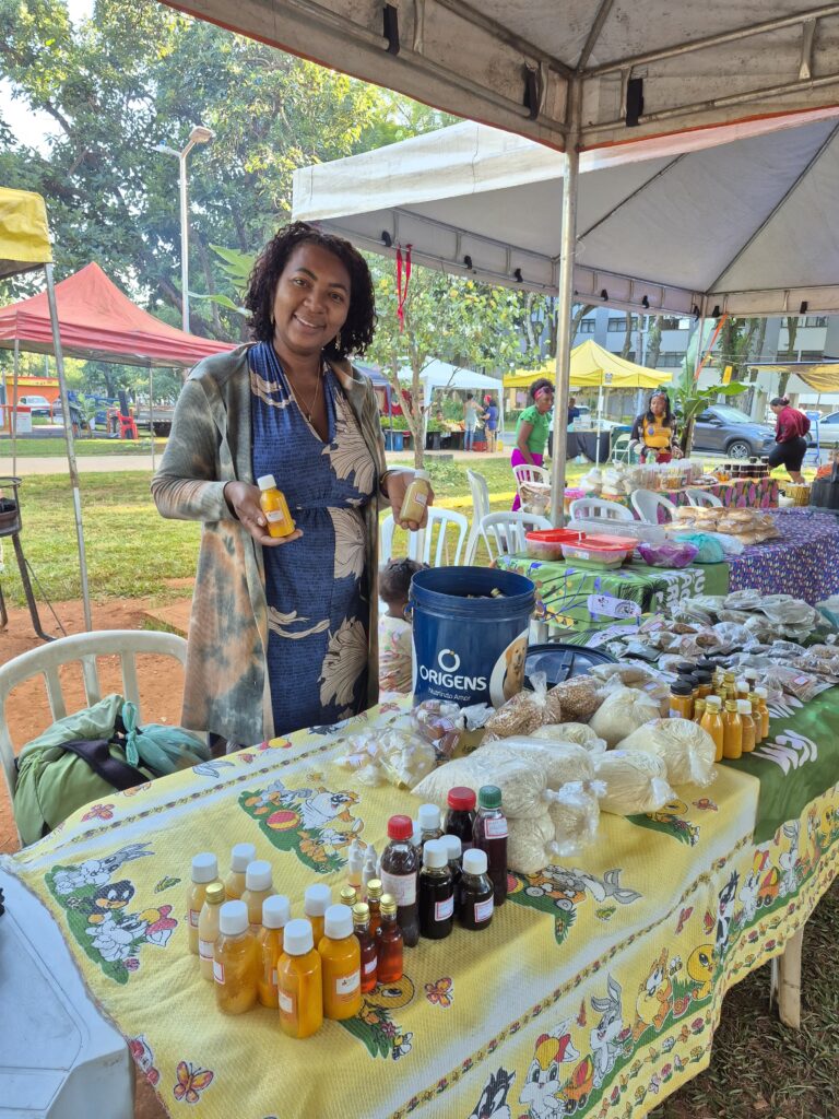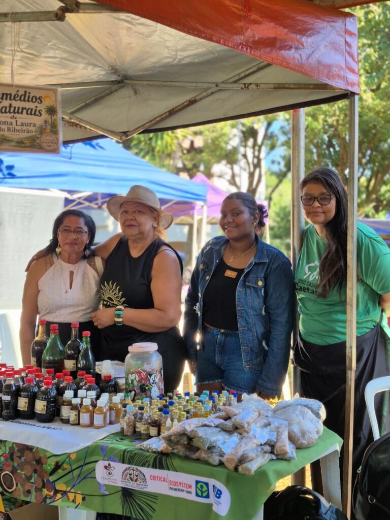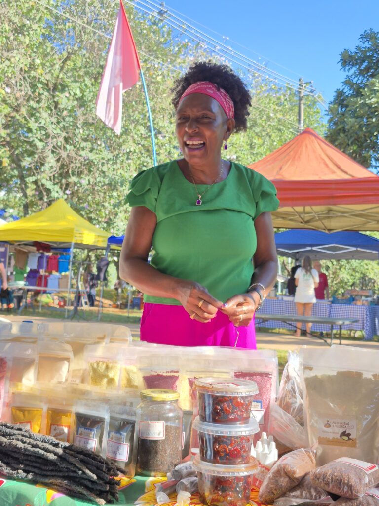 Um dos grandes destaques foi a presença das mulheres Kalunga, que trouxeram para o centro da cidade a força e a riqueza de seus territórios. Fiota, Teodora, Percília, Dirani, Vera e Laura compartilharam produtos e conhecimentos diretamente da Terra Kalunga, reafirmando o papel fundamental das comunidades tradicionais na preservação dos biomas brasileiros e na manutenção de práticas ancestrais de cuidado com a terra.