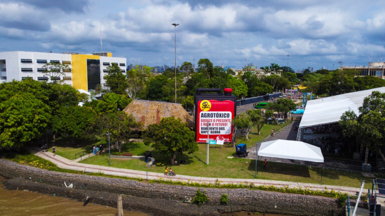 Inflável gigante do IPSA marca presença na Cúpula dos Povos e reforça debate global sobre o banimento de agrotóxicos altamente perigosos